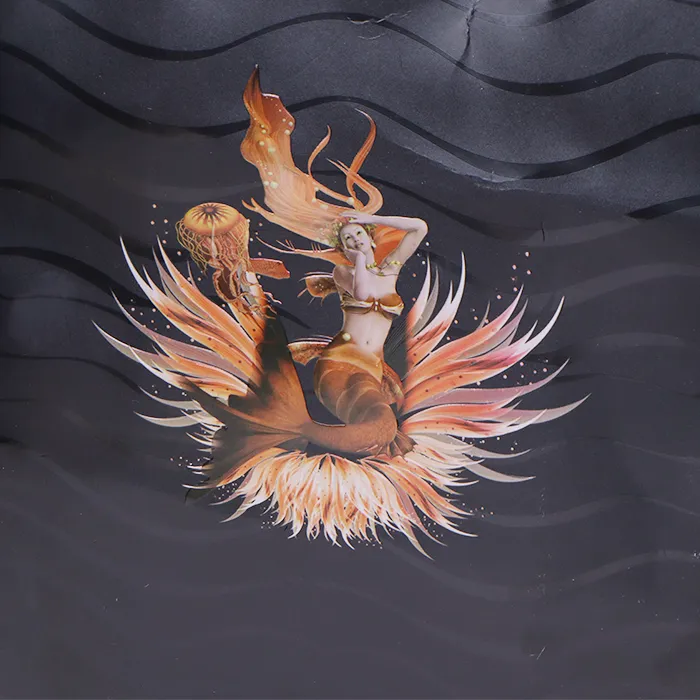 पूर्वी, मेटलिक शीन आणि गुळगुळीत पोत बहुतेकदा हॉट फॉइल स्टॅम्पिंगशी संबंधित होते. तथापि, ही पोशाख शॉपिंग बॅग नवीन दृश्य आणि स्पर्श अनुभव तयार करण्यासाठी पारंपारिक हॉट फॉइल स्टॅम्पिंगच्या जागी छपाई आणि एम्बॉसिंग प्रक्रियेचा अभिनवपणे वापर करते. प्रिंटिंग आणि एम्बॉसिंग अधिक रंग श्रेणीकरणास अनुमती देते. विशिष्ट सोने, चांदी, तांबे किंवा रंगीत फॉइलपर्यंत मर्यादित असलेल्या पारंपारिक हॉट फॉइल स्टॅम्पिंगच्या विपरीत ग्राहक प्रिंटिंग रंग, मॅट किंवा ग्लॉस फिनिश, पारदर्शक किंवा ग्रेडियंट इफेक्ट्स मुक्तपणे कस्टम करू शकतात. छपाई आणि एम्बॉसिंग बहु-रंग संयोजनांना अनुमती देते. एम्बॉसिंग प्रक्रिया मजकूर, लोगो किंवा नमुन्यांना त्रिमितीय प्रभाव देखील देते, ज्यामुळे पॅकेजिंगची परस्परता वाढते.